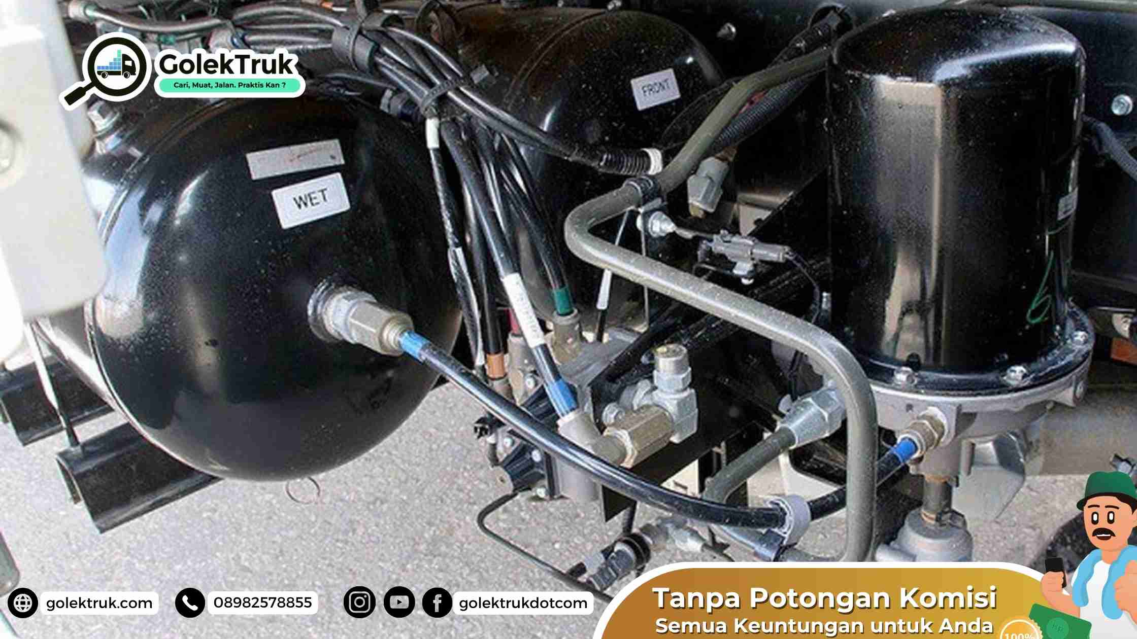 - Saluran Udara: Udara bertekanan dialirkan melalui saluran udara menuju rem chamber di setiap roda.